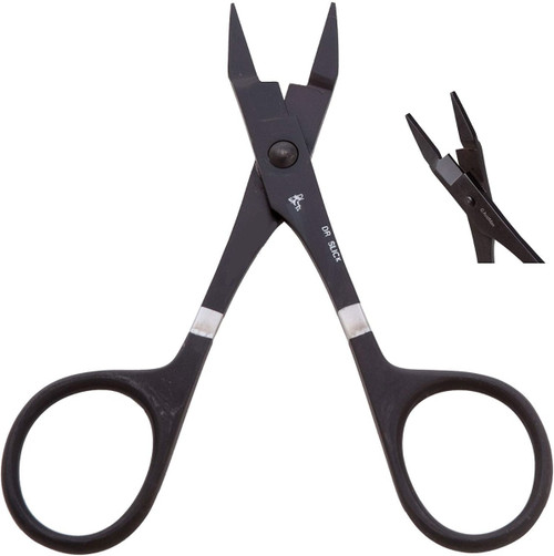 Designed to crush barbs and work with small flies. This clamp features a heavy box blade scissor for cutting really stout materials. A smooth-jawed more powerful version of the popular scissor clamps.