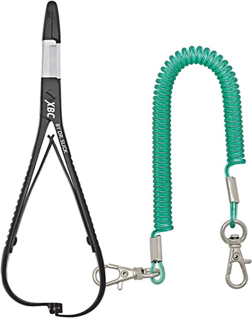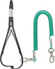 No finger loops here! Simply squeeze the clamp all the way through the ratchets to release. To close, squeeze until the ratchets lock. Extremely popular alternative to the traditional loop and ratchet clamps. This versatile tool features a serrated scissor mounted behind the jaws for cutting tippet/leader material, trimming flies streamside or opening that pesky bag of jerky. Comes with hook eye cleaning pin in jaw, dual self-opening springs and a full-swivel bungee lanyard. Make it your main squeeze!