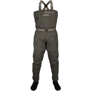 The SLATE Breathable Stockingfoot Chest Wader is 100% waterproof. Coupled with 6-Ply puncture resistant nylon full wrap lower leg reinforcement for lasting durability. Additionally, the single seam crotch design eliminates seam chafe. With Ample storage 2 top entry chest pockets, 2 pass-through pockets, and flip out security pocket. Lastly, suspenders offer four attachment points for fly fishing essentials and 6-Ply gravel guards protecting attached 4mm neoprene booties.