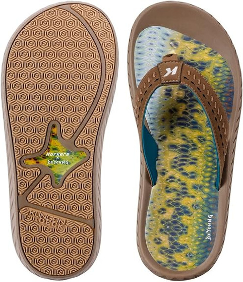 - FOOTBED // Vibrant DeYoung art provide fun, fish inspired decorative detail.