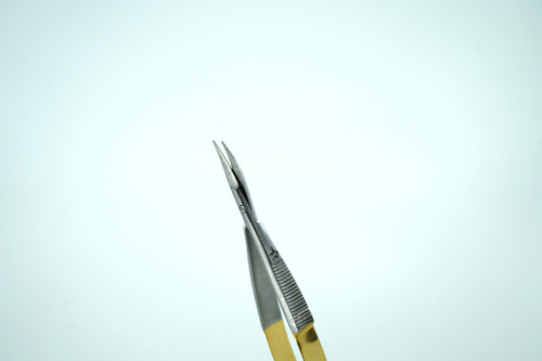 Curved- The name of the game is simple, just how we kept it with the spring scissor. All you’ve got to do is squeeze and you’re in business. The small, fine tip is great for detail work as well as general in-hand tying. Curved edge for shaping.